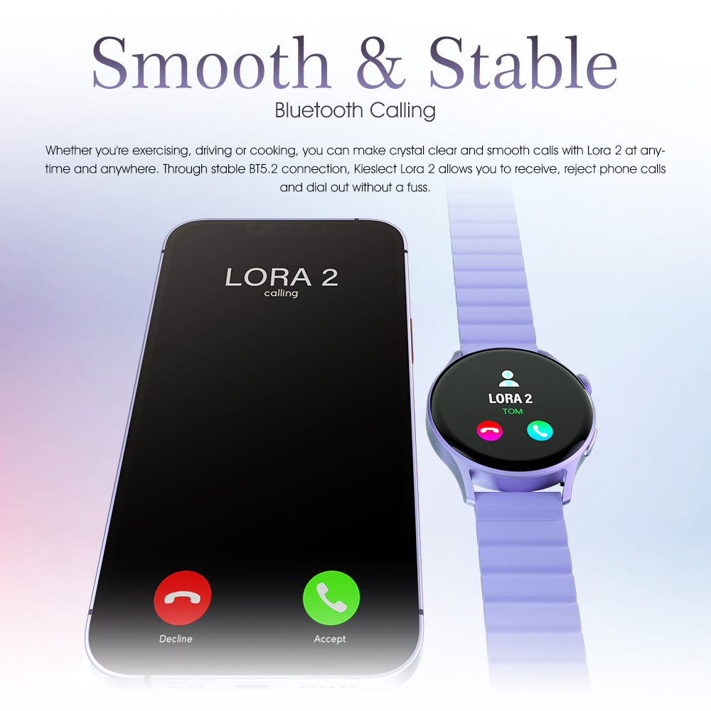 Lora 2 привертає увагу своїм приголомшливим зовнішнім виглядом. Цей елегантний годинник має тонку та міцну раму з алюмінієвого сплаву, яка забезпечує стиль і захист. Завдяки підключенню Bluetooth 5.2 користувачі можуть безперешкодно здійснювати дзвінки прямо зі свого годинника.