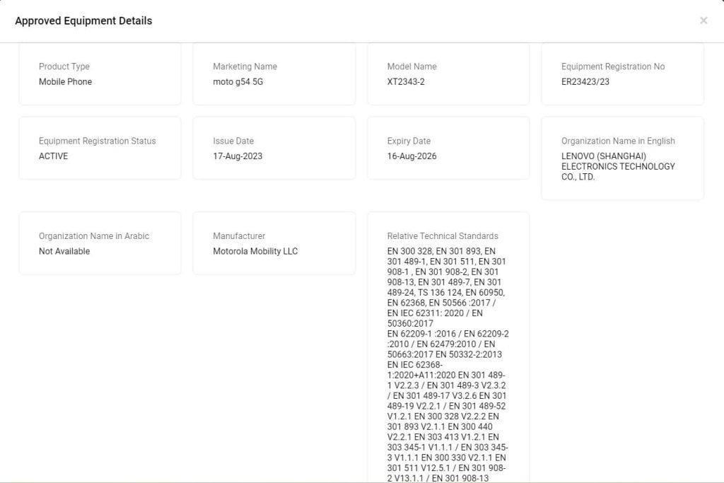 Motorola готує до випуску новий смартфон під назвою Moto G54 5G. Як і його попередник, G53 5G, G54 5G, ймовірно, також буде моделлю нижчого середнього класу. Після нещодавньої появи в базі даних FCC, він з’явився на сайті TDRA.