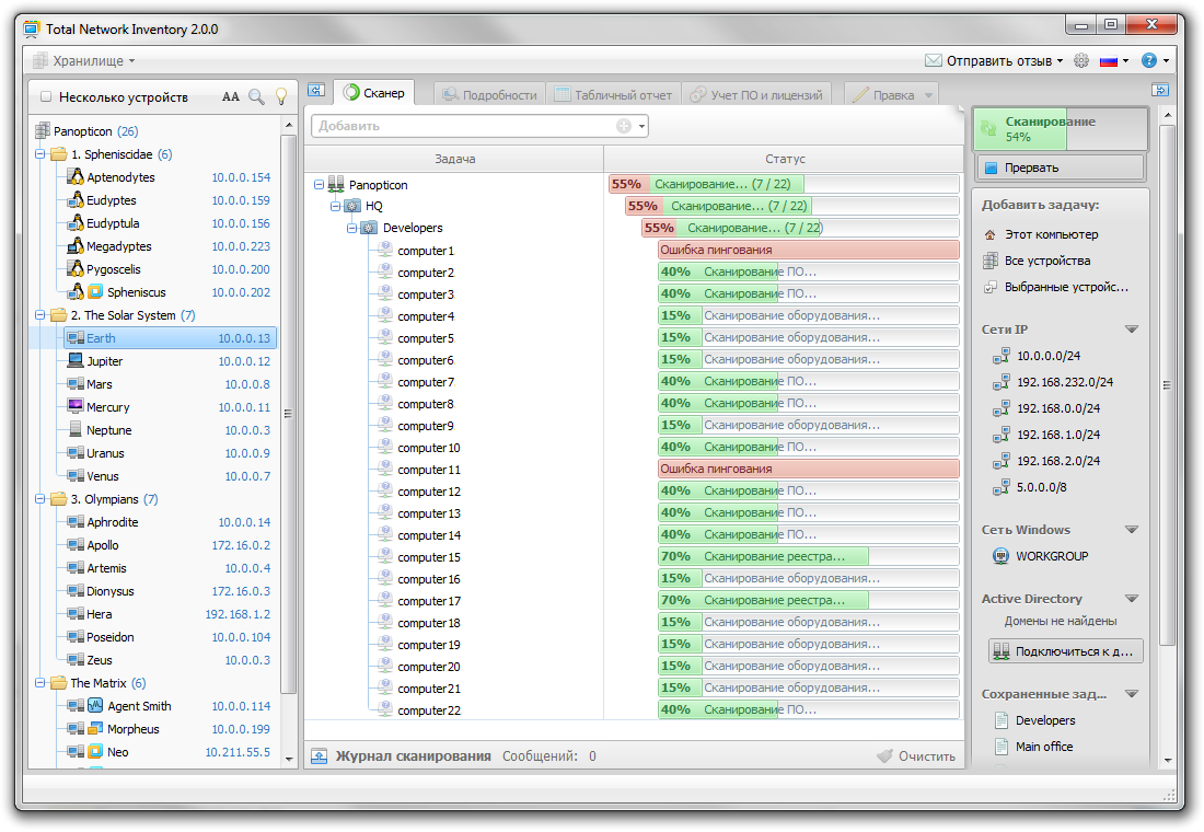 Вопрос инвентаризации оборудования и сетевых компонентов, а также установленного на компьютерах программного обеспечения, остро встает в рамках любой крупной сети. Действительно, выполнить обзор сети, география которой ограничивается одним зданием, а численность рабочих мест – десятком, не составляет особого труда. Однако в крупных сетях инвентаризация является процессом затратным, как с точки зрения времени, так и денежных средств. Именно здесь применение Total Network Inventory наиболее оправдано.